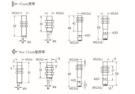 Thread size / 螺紋尺寸: M12屏蔽式 / M12非屏蔽式