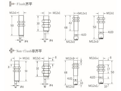 Thread size / 螺紋尺寸: M12屏蔽式 / M12非屏蔽式